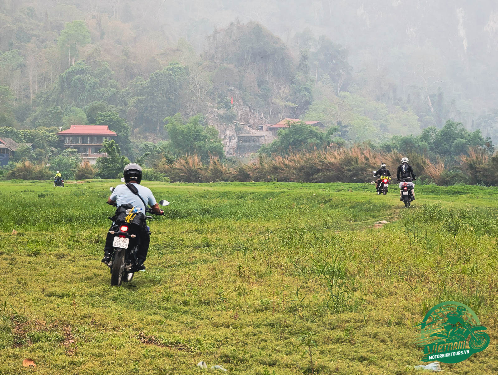 The ride today is a perfect introduction to Northern Vietnam motorbiking—smooth mountain roads, limestone karst scenery, and authentic rural life. We pass through small villages where daily life unfolds naturally: farmers working in the fields, water buffalo resting by the roadside, and children waving as we ride by.